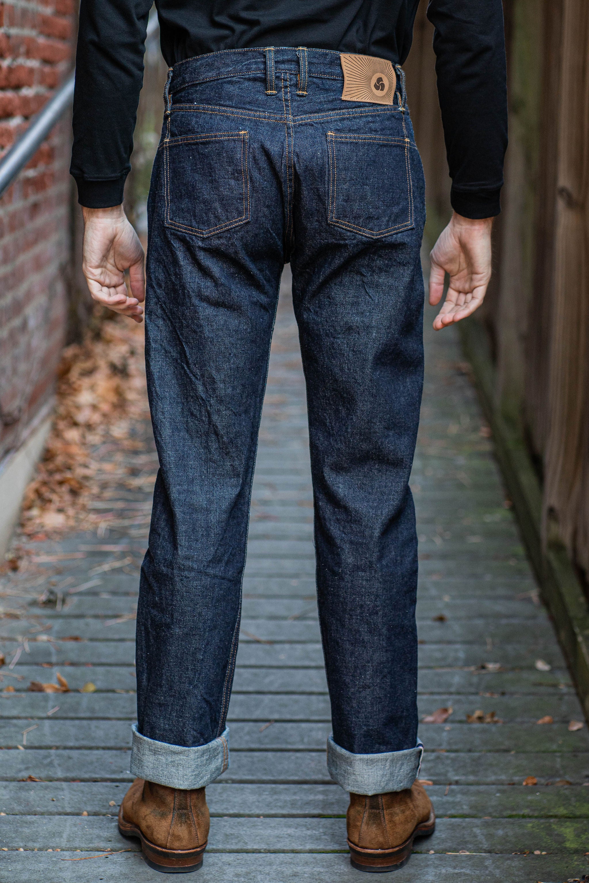 The 3sixteen CS-100xk is their Classic Straight fit, which is a more vintage straight leg fit. This cut sits higher with a roomy top block and a slight taper below the knee for a more open fit.