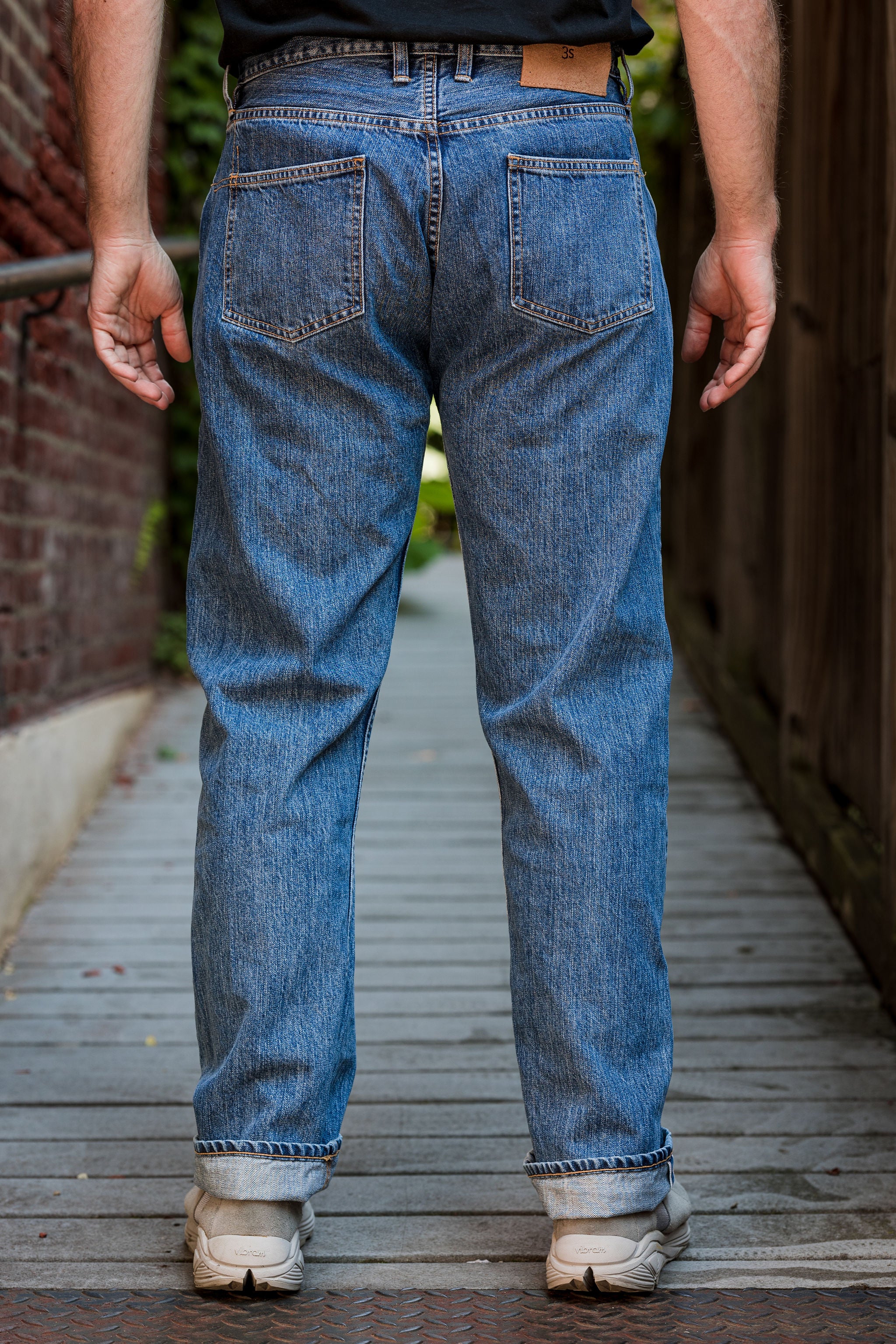 The 3sixteen CS-100xk is their Classic Straight fit, which is a more vintage straight leg fit. This cut sits higher with a roomy top block and a slight taper below the knee for a more open fit.