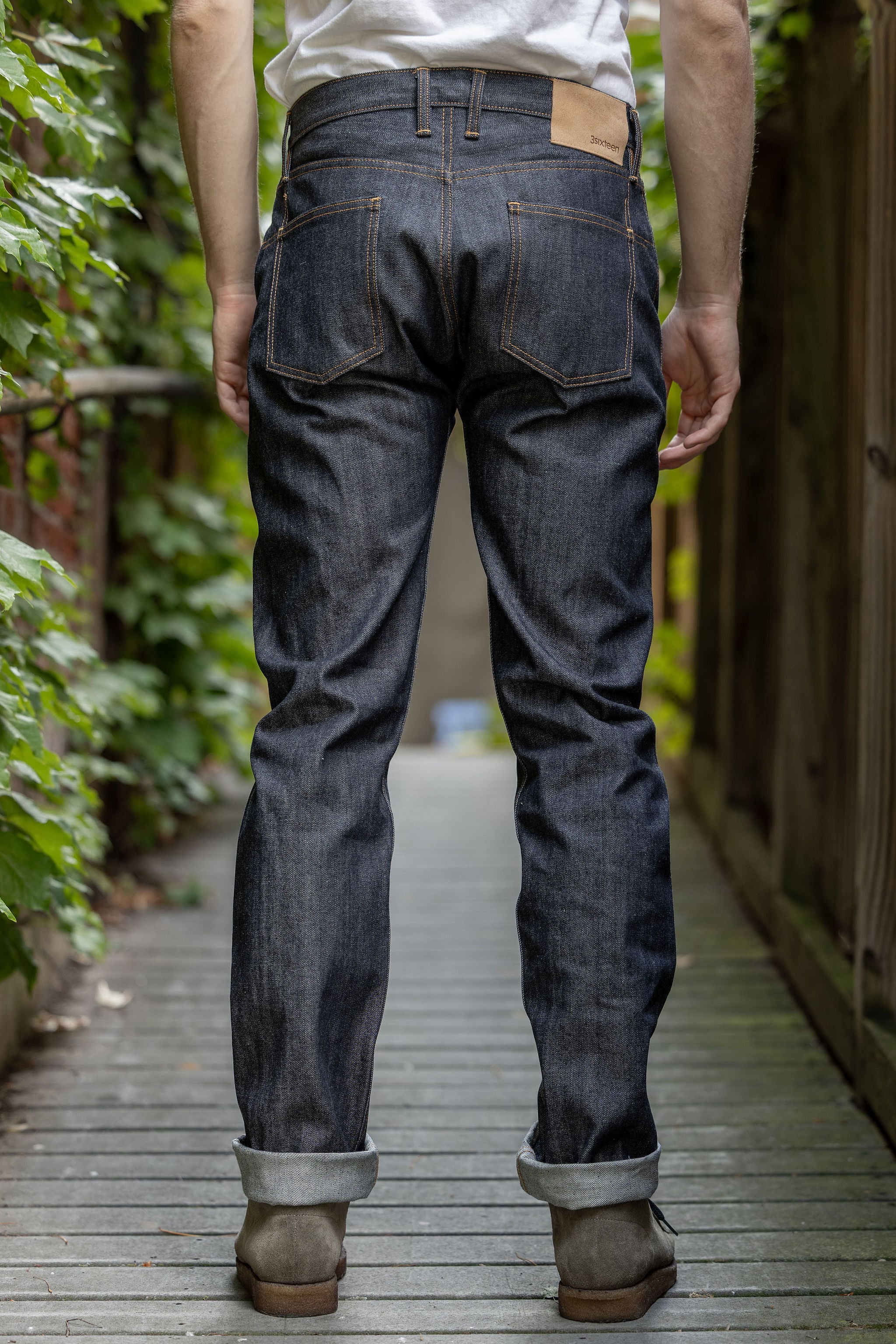 The CT is 3sixteen's Classic Tapered fit. This cut sits higher with a roomy top block and a sharp taper below the knee. This version of the CT features the brands flagship 100x denim, a 14.5oz raw selvedge denim woven exclusively for the brand by Kuroki Mills. A staple for the brand for over 15 years, the 100x fabric has a notably soft hand not often found in raw denim, making it very easy to break in.