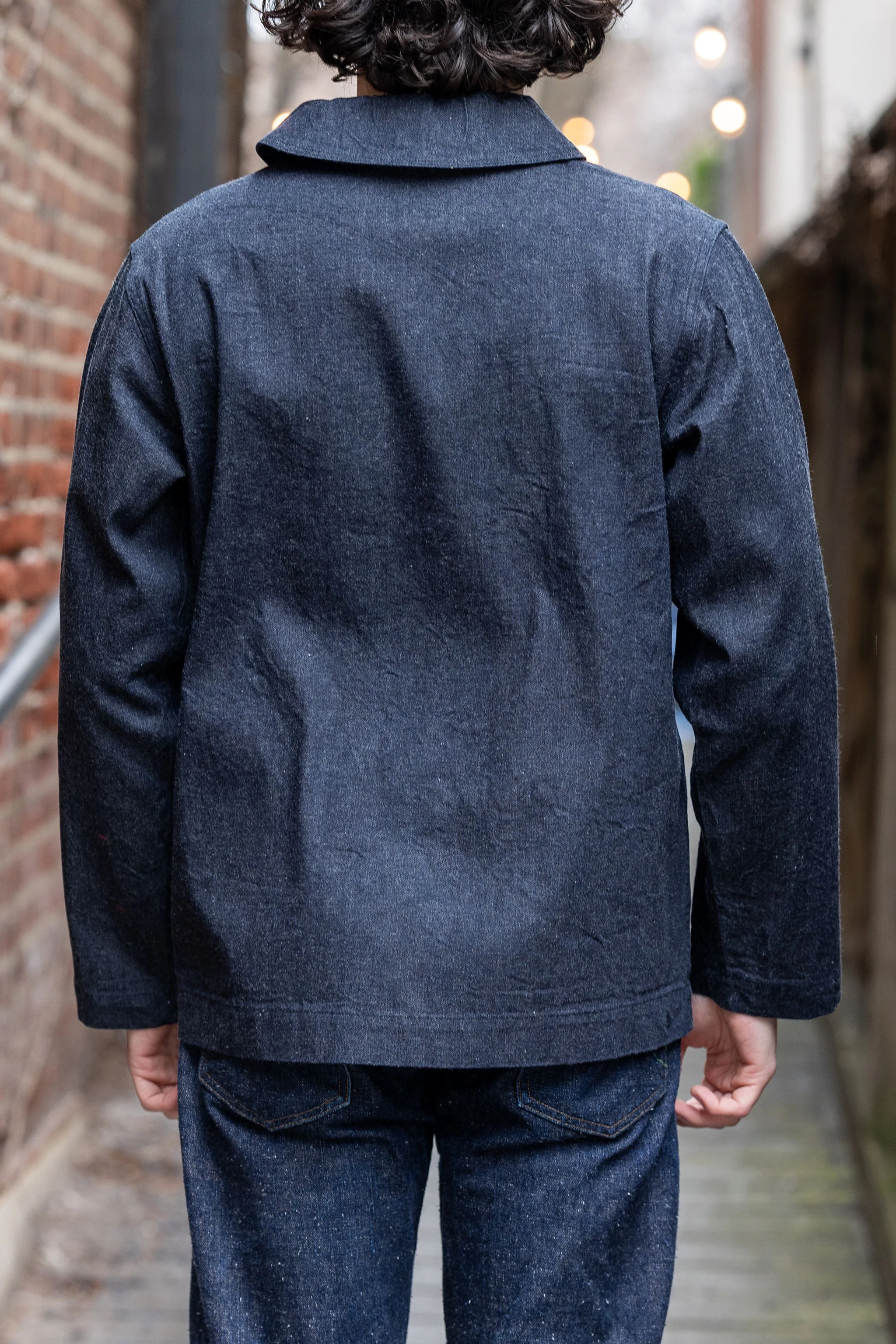 First issued in 1901, with originals now fetching some seriously eye-watering prices on the vintage market, the USN Dungaree Jumper is an iconic, unique piece of military history. Issued until the end of the 1940's, the jacket features a distinct shawl collar (with no pointed tip, the collar doesn't blow around when exposed to strong winds), denim construction, square patch pockets, and, prior to WWII metal rationing, removable painted brass buttons.