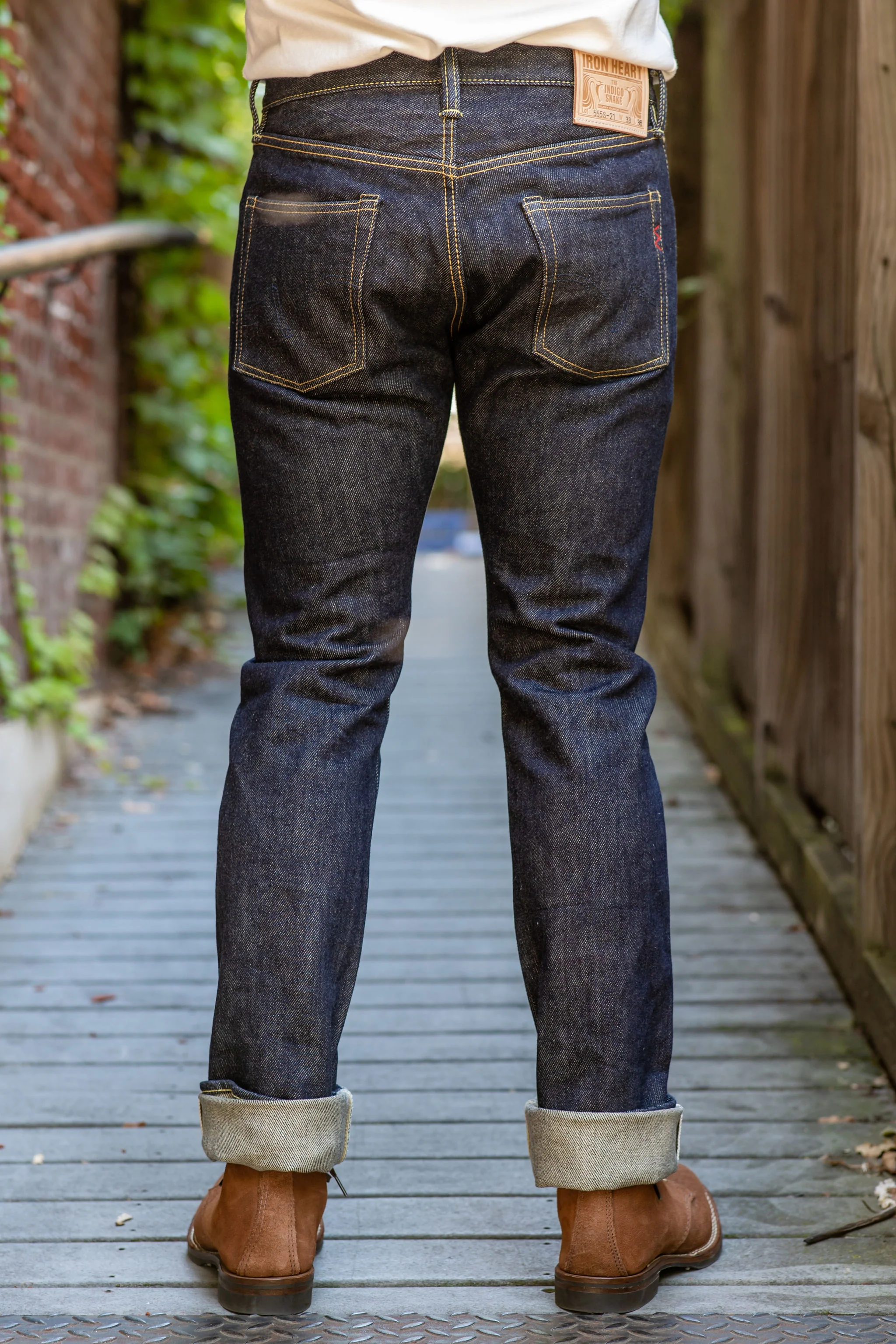 The Iron Heart IH-555S-21 jean is the answer for all those guys looking for a slim silhouette. They call it a Super Slim, but it's really just Iron Heart's take on a modern slim jean. The medium rise provides plenty of coverage up top, and the slim thigh and leg profile keep the jeans looking very clean throughout. Just as perfect for sneakers as they are for boots, or even some long wing bluchers. And with Iron Heart's signature 21oz indigo denim at its core, these jeans will mold to your body and provide a fantastic fit.